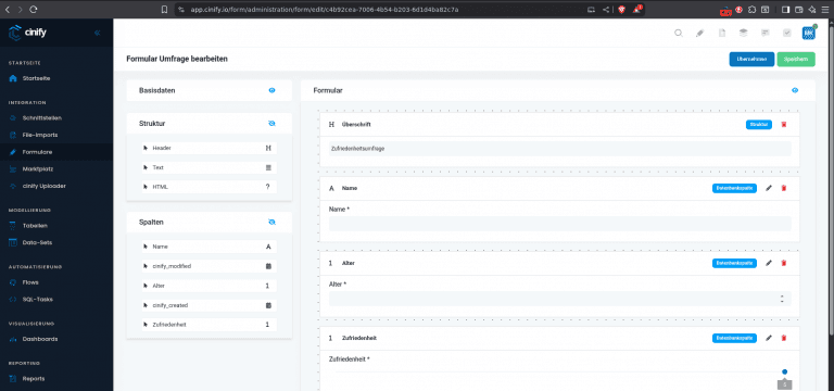 Ausschnitt des Bearbeitungsmodus der cinify-Formulare