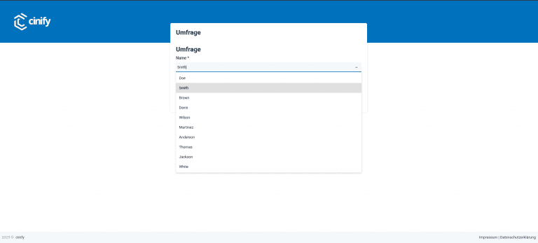 Mit dem Umfrage-Feature von cinify lassen sich diese Antworten strukturiert, automatisiert und vollständig in Ihre bestehende Dateninfrastruktur integrieren. Was das im Alltag bedeutet, zeigen wir anhand unseres eigenen Anwendungsfalls – von der ersten Idee bis zur vollständigen Integration.